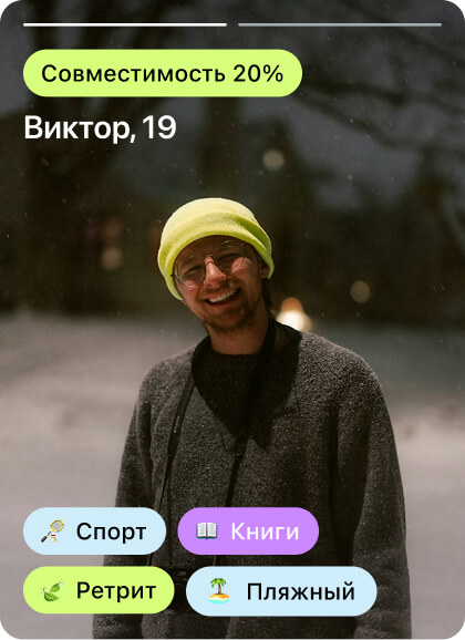 Наши алгоритмы анализируют 20+ параметров: интересы, темп путешествия, стиль отдыха, хобби и даже утренний кофе. Встречаются только те, кто подходит друг другу.
